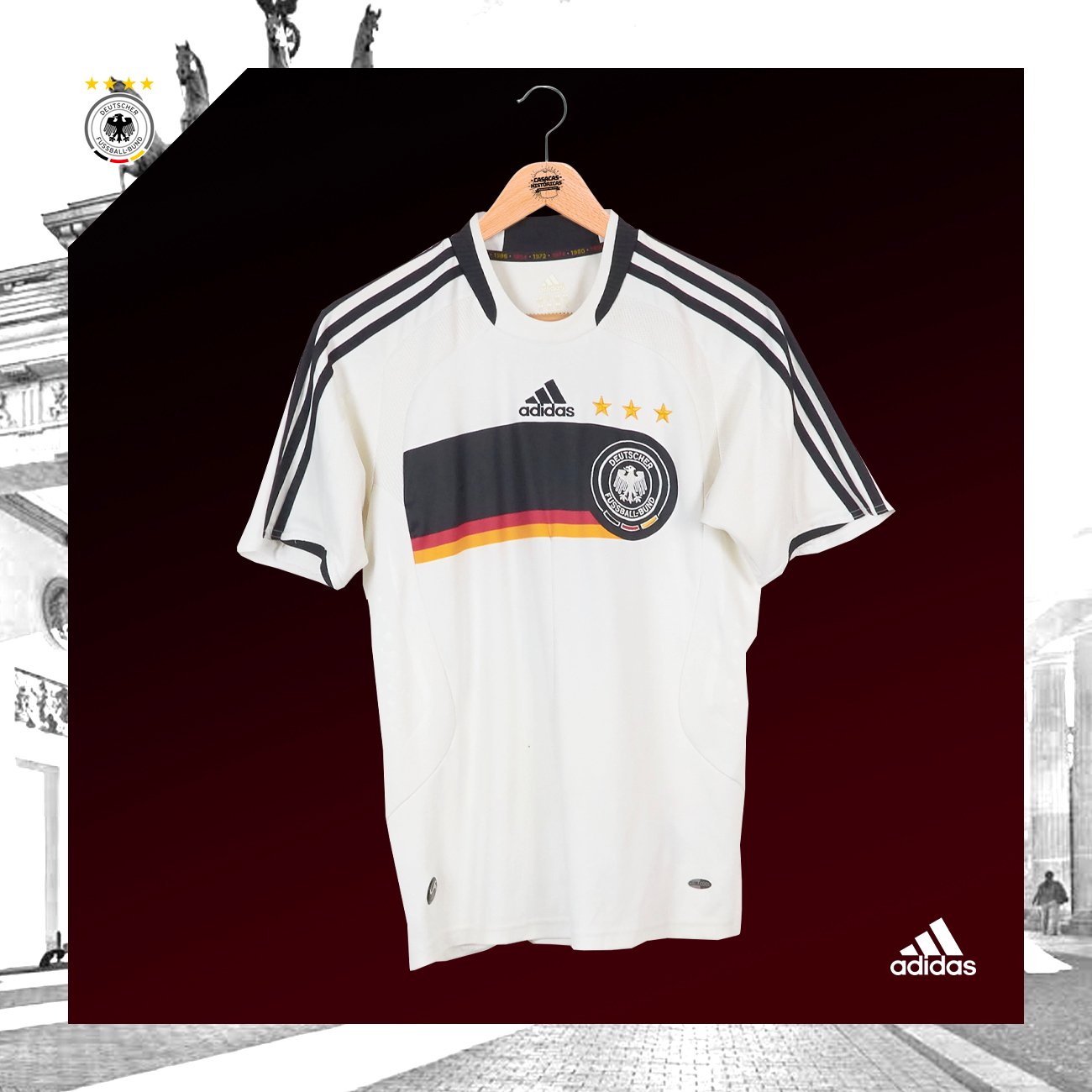 Condición de la prenda: 2da mano Detalles de la condición: Buen estado Hecha por: ADIDAS Características: Casaca de Alemania, usada en la Euro 2008, en la que salen subcampeones perdiendo la final contra España Jugadores que vistieron esta casaca: Lahm, Podolski, Ballack, Klose