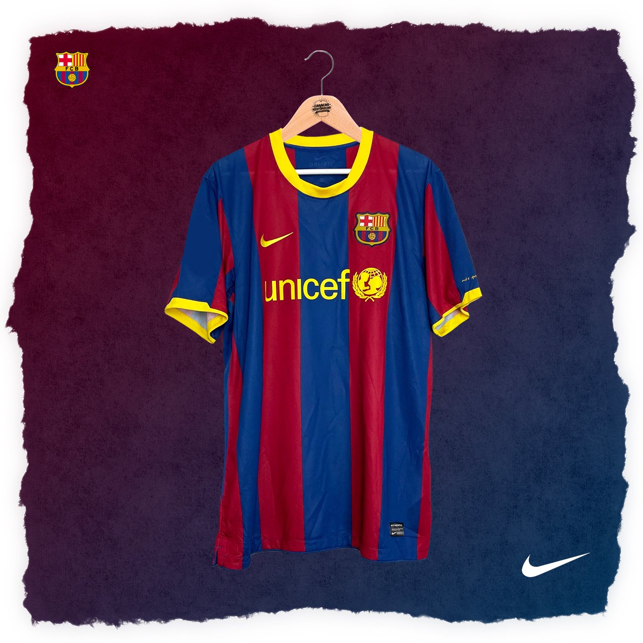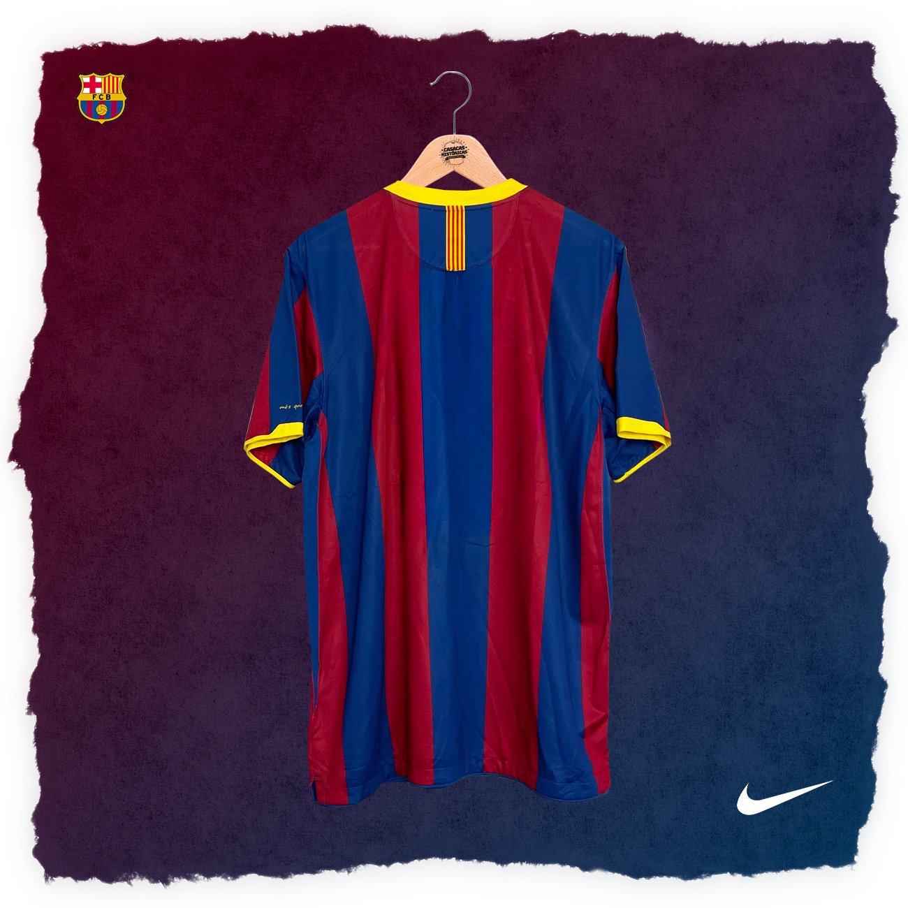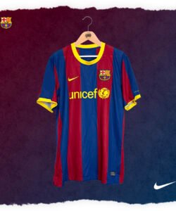 Casaca del Barcelona, de la temporada 2010/11, en la que consiguieron un triplete. Talla M. Hecha por Nike. Incluye el dorsal #10 de MESSI y el parche de Campeón Mundial de Clubes 2009. Jugadores que usaron esta casaca: Messi, Iniesta, Villa, Xavi, Puyol