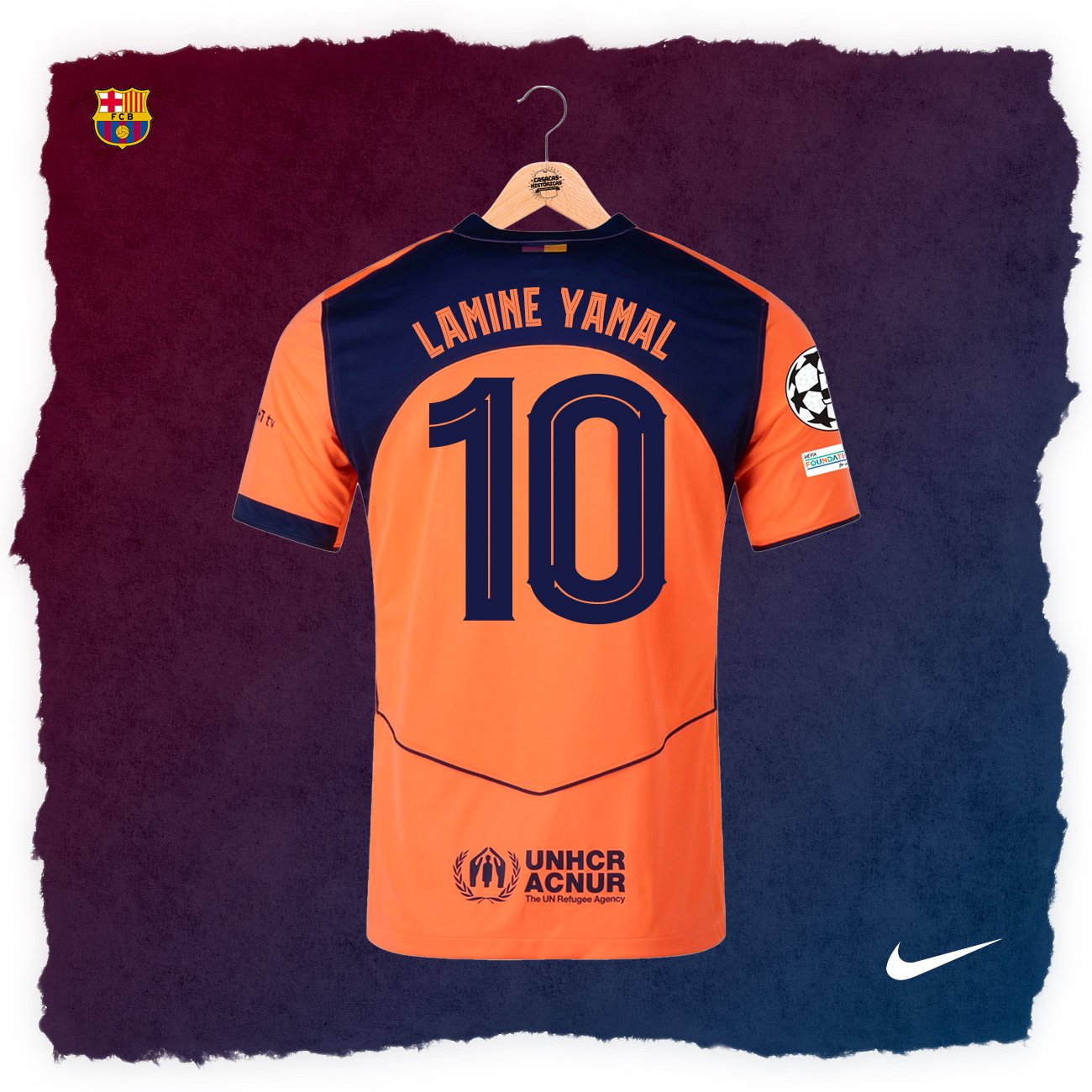 Características: Casaca del Barcelona, usada en la temporada 2025/26. La camiseta revive el template Total90 de Nike de medidados de los años 2000, con la tecnología de la actualidad. Incluye el dorsal del jugador.