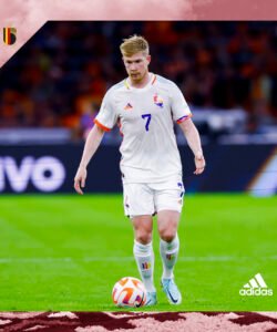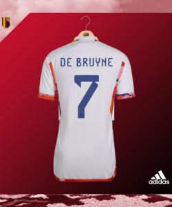 Casaca de Bélgica, usada en el Mundial 2022. Talla L (versión player XL). Hecha por Adidas. Incluye el dorsal #7 de DE BRUYNE. Jugadores que usaron esta casaca: De Bruyne, Hazard, Lukaku, Carrasco