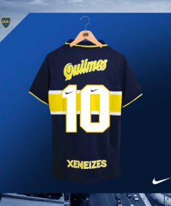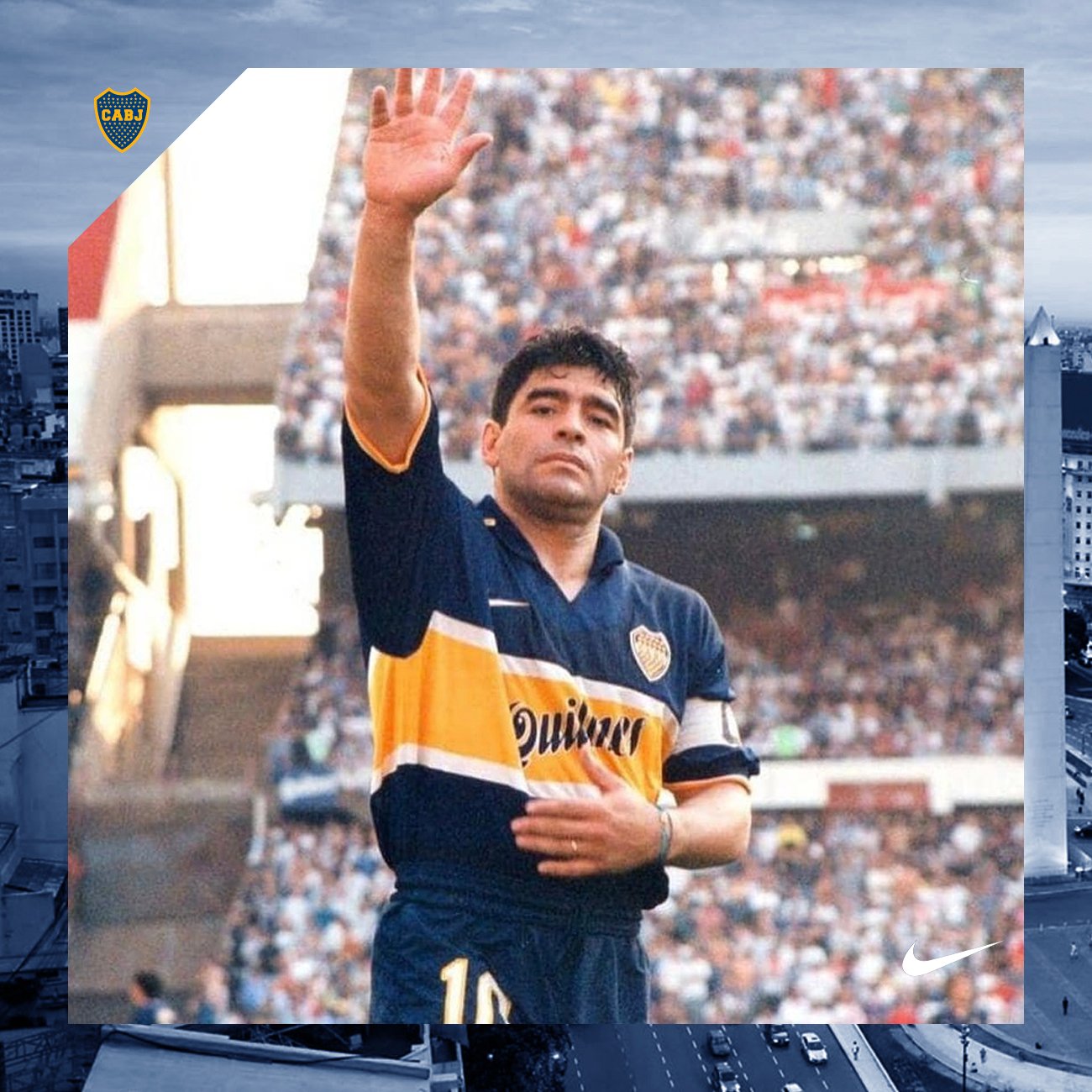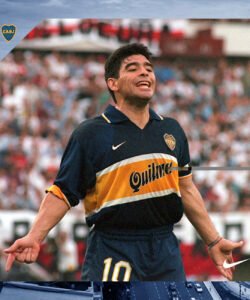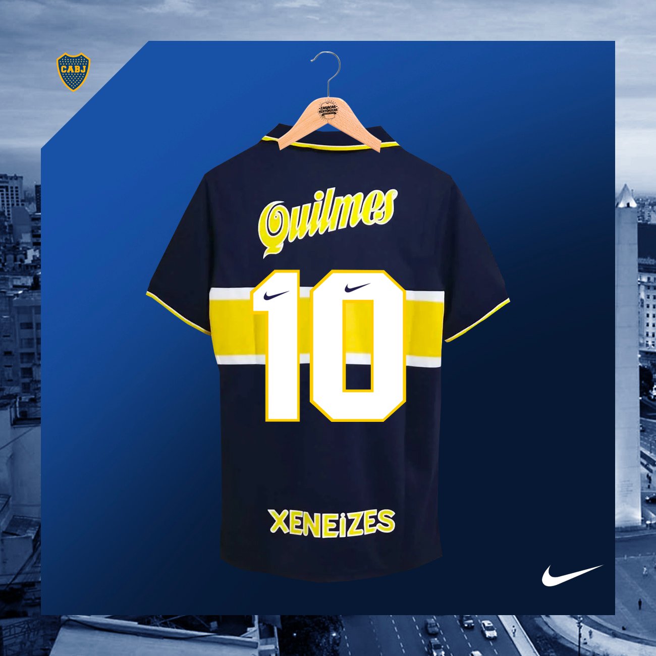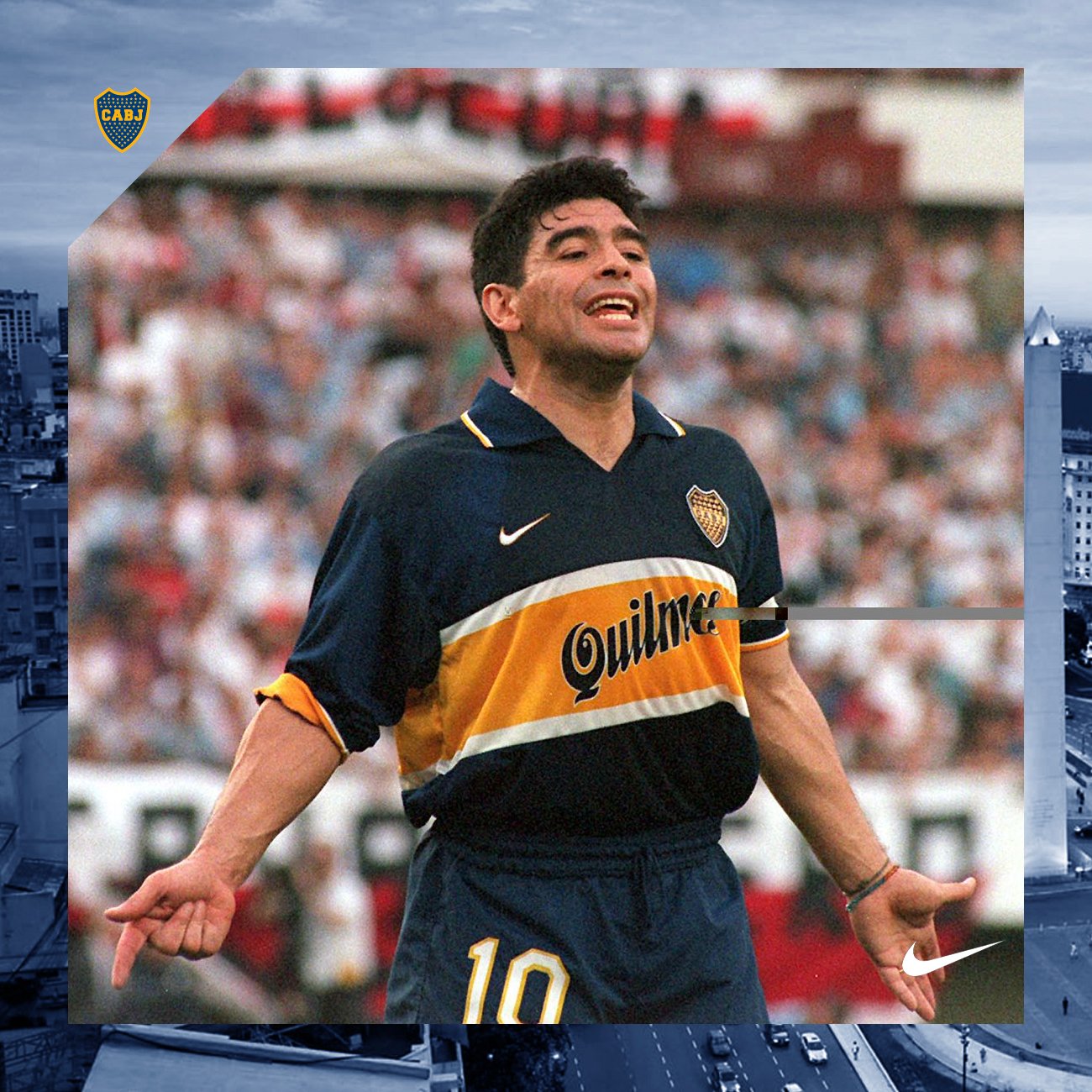 Casaca de Boca Juniors, de la temporada 1997, recordada por ser el primer modelo de Nike y la última camiseta que usó Maradona. Talla L. Hecha por Nike. Incluye el dorsal #10 que usó Maradona. Jugadores que usaron esta casaca: Maradona, Caniggia, Riquelme, Hernández