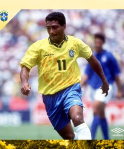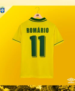 Casaca de Brasil, usada en el Mundial de Estados Unidos 1994, donde se coronaron por 3era vez en su historia como Campeones del Mundo. Incluye el dorsal #11 de ROMÁRIO Jugadores que usaron esta casaca: Romário, Dunga, Bebeto, Taffarel, Ronaldo