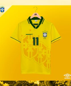 Casaca de Brasil, usada en el Mundial de Estados Unidos 1994, donde se coronaron por 3era vez en su historia como Campeones del Mundo. Incluye el dorsal #11 de ROMÁRIO Jugadores que usaron esta casaca: Romário, Dunga, Bebeto, Taffarel, Ronaldo