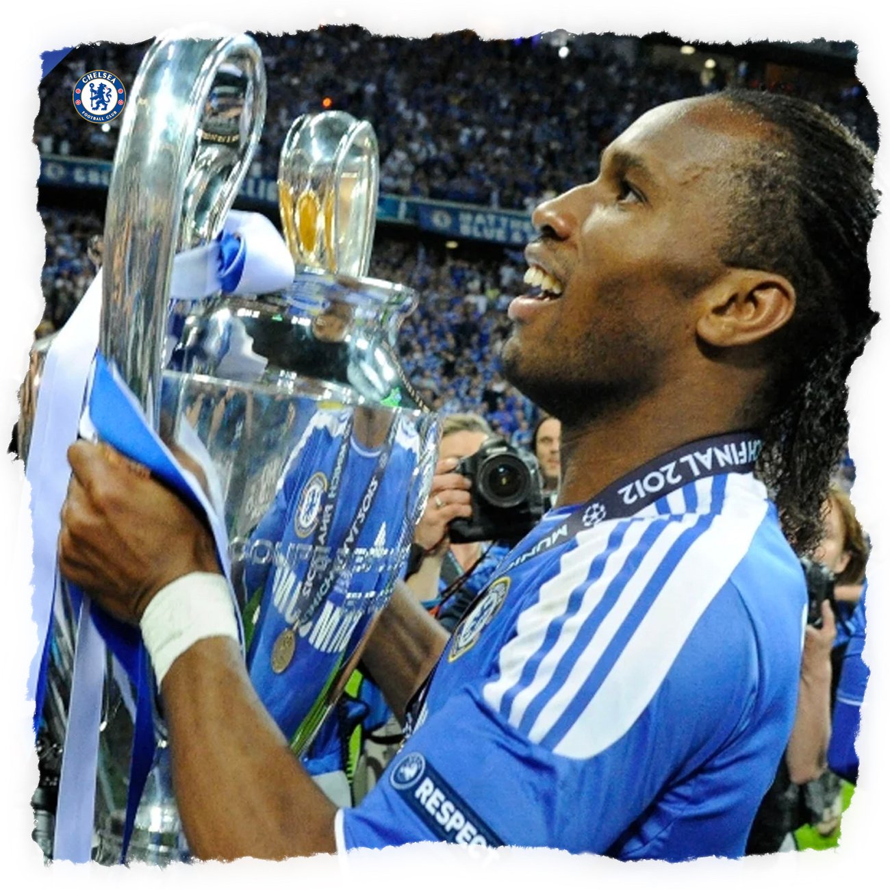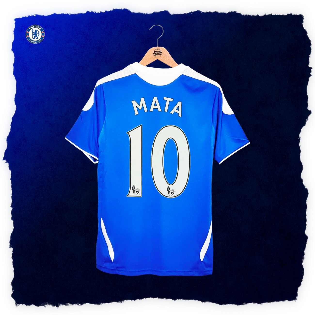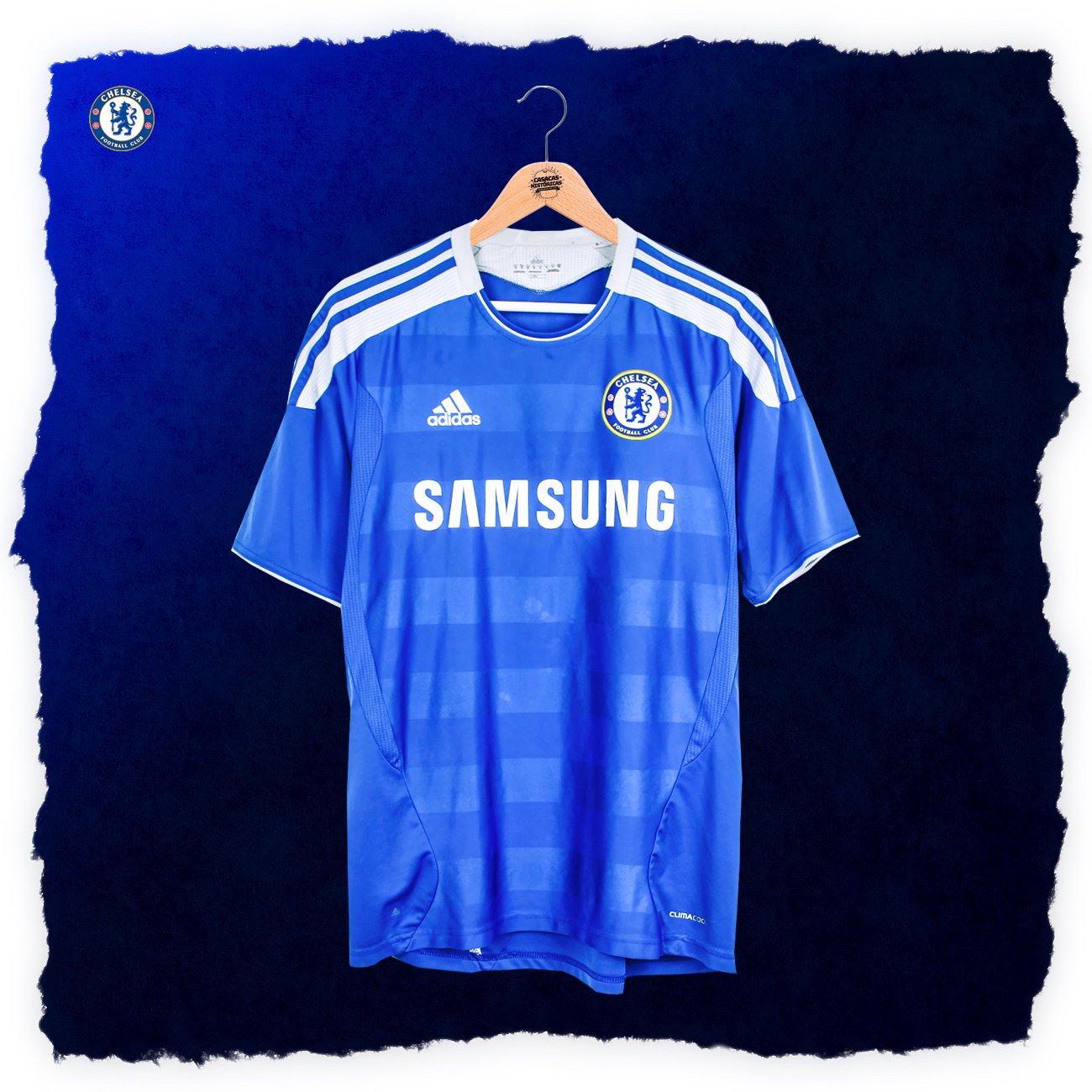 Casaca del Chelsea, de la temporada 2011/12, modelo con el que ganaron su primera Champions League contra el Bayern Munich. Hecha por Adidas. Jugadores que usaron esta casaca: Drogba, Lampard, Torres, Terry