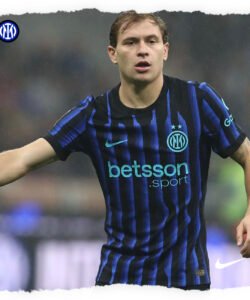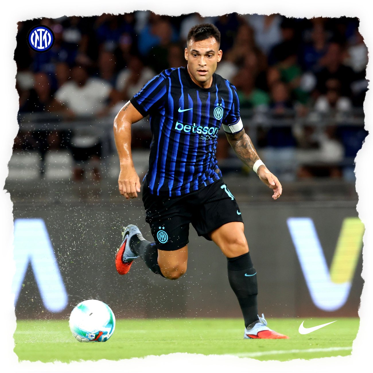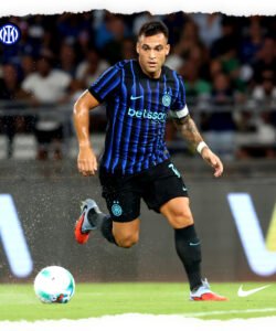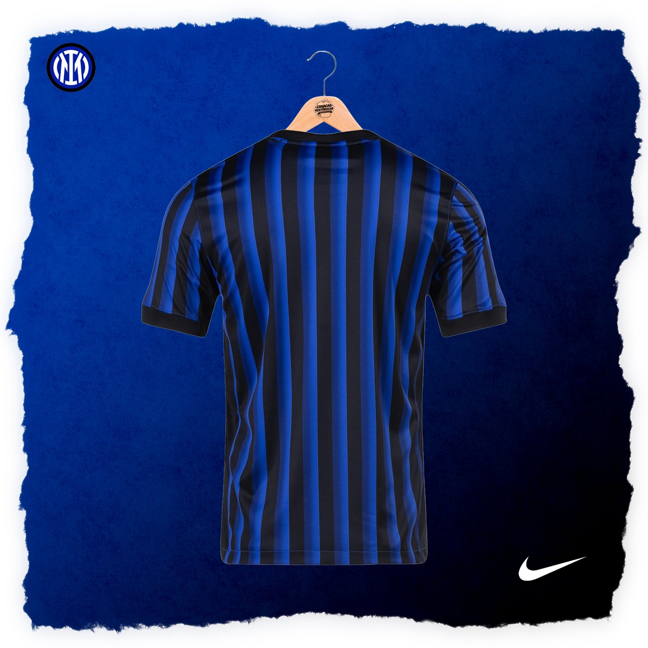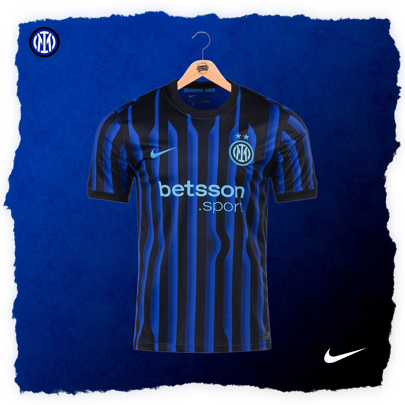 Características: Casaca del Inter, usada en la temporada 2025/26. El diseño es una interpretación del texto INTER, transformado en líneas verticales muy condensadas.