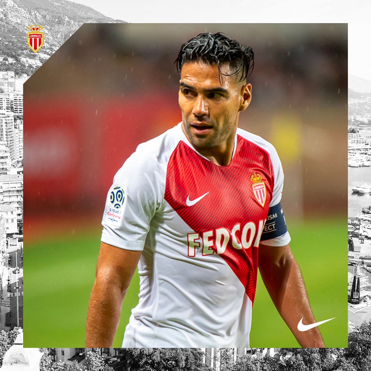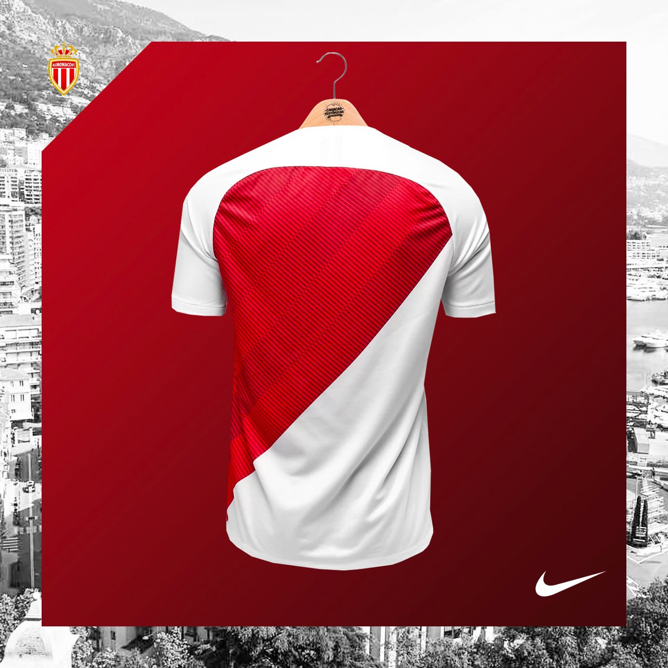 Casaca del Mónaco, usada en la temporada 2018/19. Talla XL. Hecha por Nike. Jugadores que usaron esta casaca: Falcao, Fabregas, Sidibé
