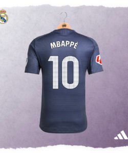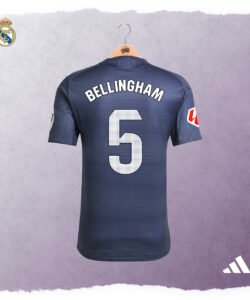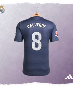 Características: Casaca del Real Madrid, utilizada en la temporada 2025/26. Diseño inspirado en el Estadio Santiago Bernabéu. Incluye el parche de Laliga y dorsal del jugador.