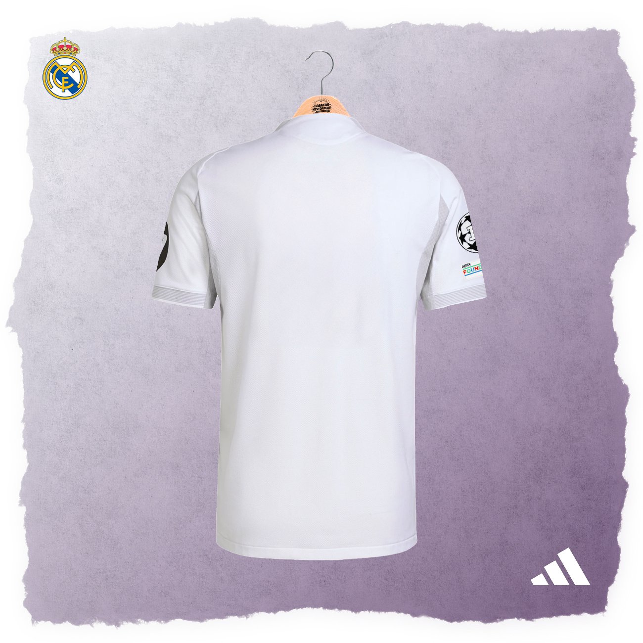 Características: Casaca del Real Madrid, utilizada en la temporada 2025/26. Incluye el parche de la Champions League y dorsal del jugador.