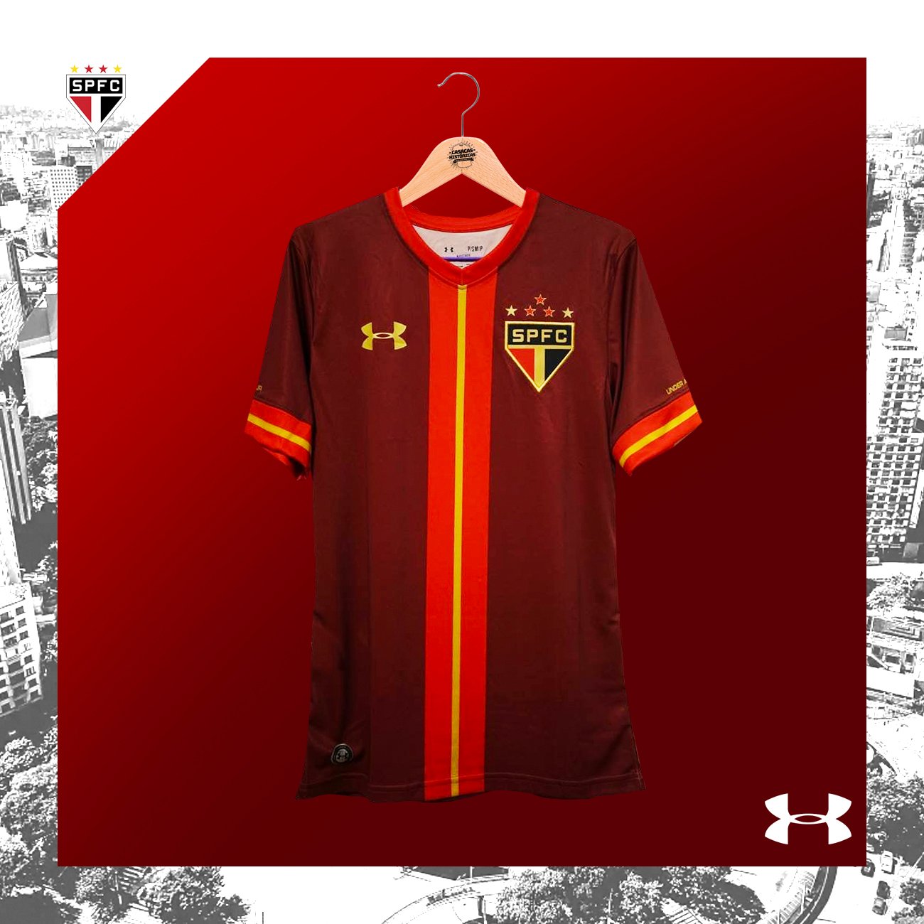 Tercera casaca del Sao Paulo FC, de la temporada 2015, homenaje a Rogerio Ceni. Talla 12. Hecha por Under Armour. Jugadores que usaron esta casaca: Rogerio Ceni, Alexandre Pato, Centurión